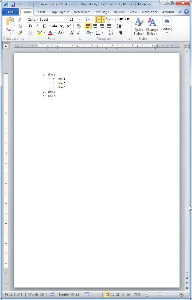 This method allows the insertion of lists (numbered or with bullets) into your Word document.
